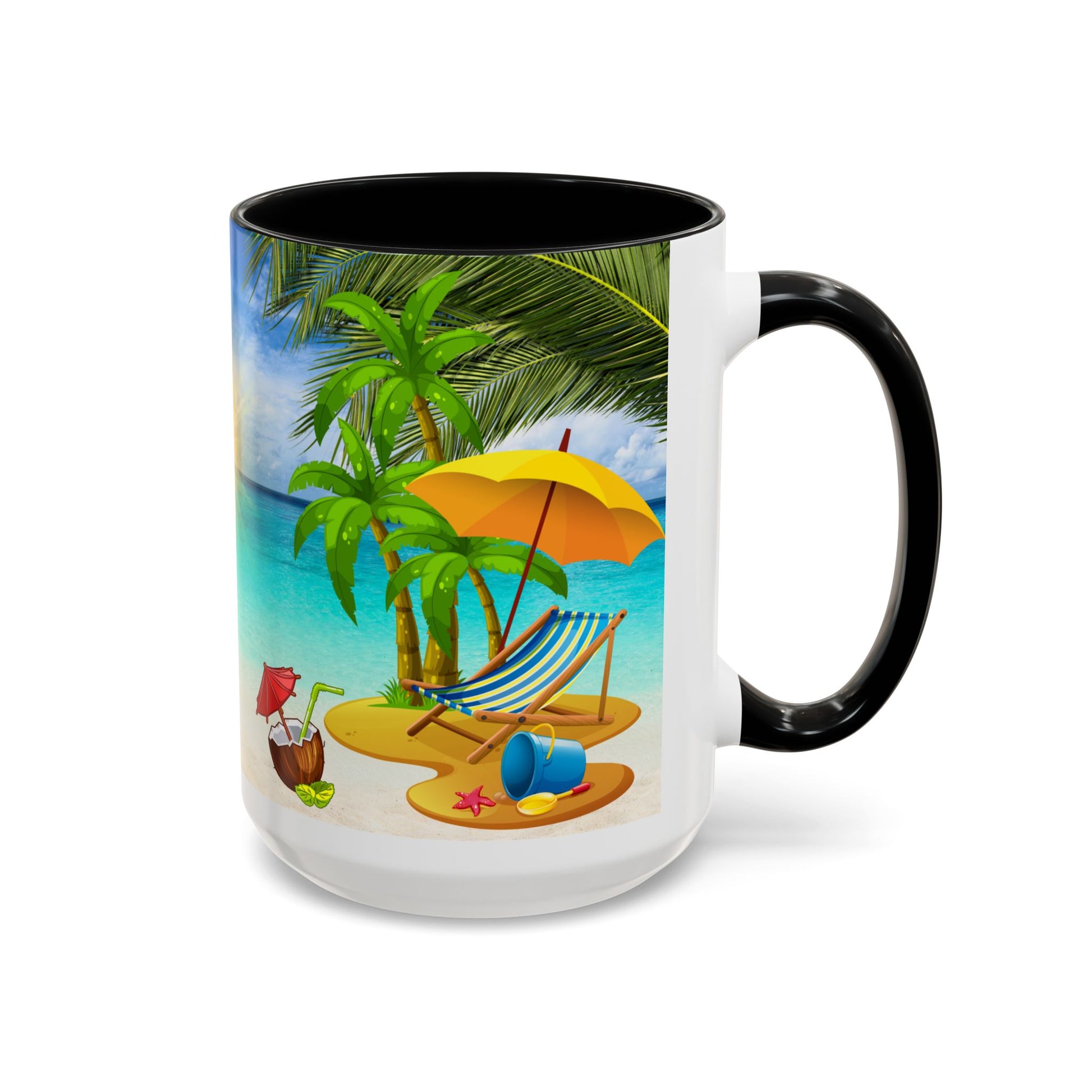 Introducing our vibrant Accent Coffee Mug – the perfect companion for your daily dose of joy. This eye-catching mug radiates a sunny beach vibe, transporting you to your favorite getaway every time you take a sip. Crafted from durable white ceramic, it features a glossy finish and a delightful color contrast with the colored interior and handle, making it a standout piece in any kitchen. Ideal for coffee aficionados, tea lovers, or anyone who enjoys a splash of color in their morning routine. With sizes ranging from 11oz to 15oz, it’s suitable for cozy evenings or casual gatherings. Perfect for gifts on occasions like birthdays, holidays, or just because, this mug brings cheer and charm to every occasion, making every drink a little more special.