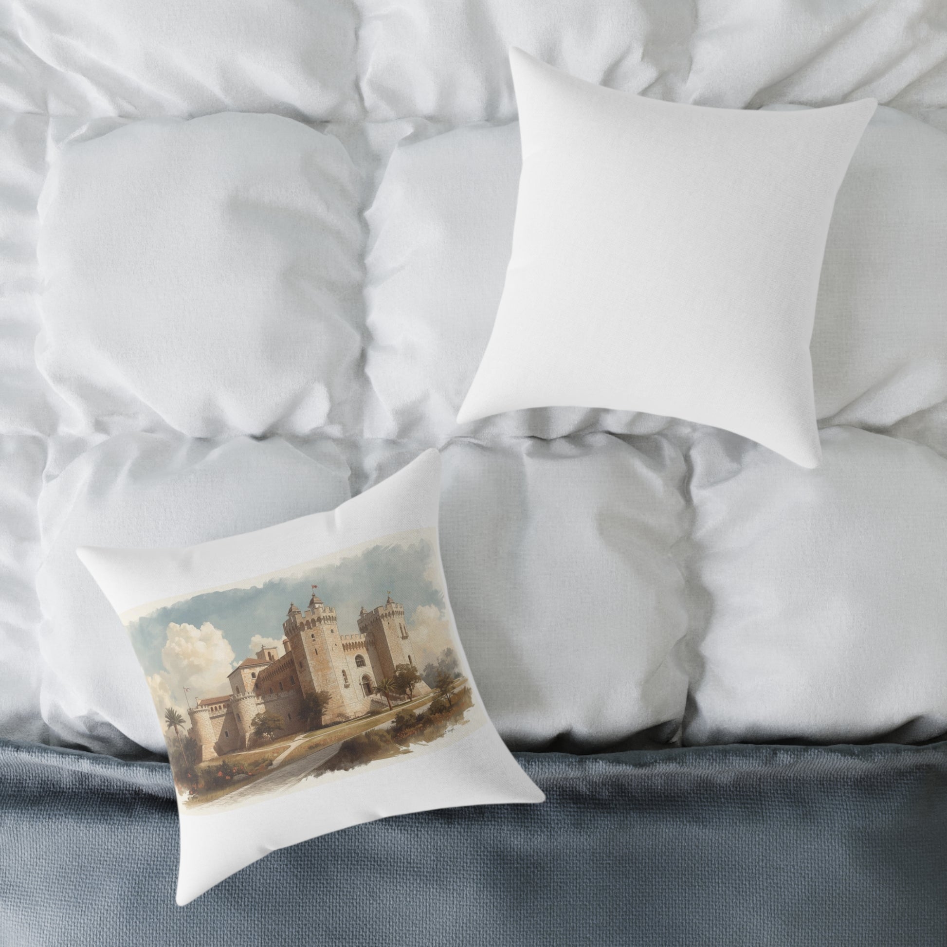 Castle Illustration Decorative Pillow, Cozy Home Decor, Unique Gift for Housewarming, Living Room, Art Lover's Accent