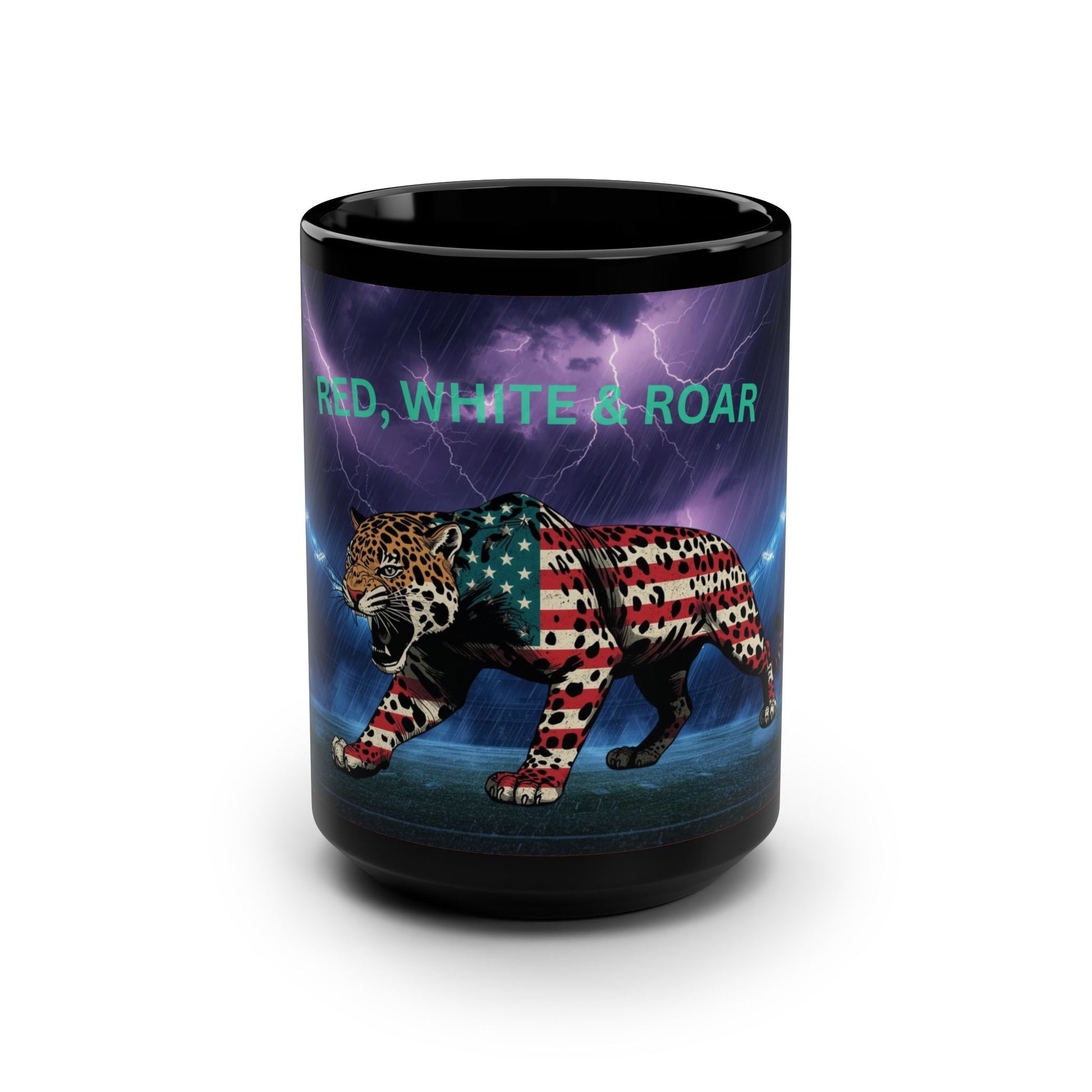 Patriotic Black Mug with Roaring Tiger Design, Ideal for Veterans Day, Memorial Day, Tea Lovers, Coffee Gifts, 15oz Cup